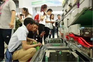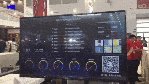 Smart factory智能工厂区更是给观众带来了“实惠”。理光与中浩紫云倾力打造“生产数据可视化平台”,智能工厂生产数据可视化系统是为本次展会观众特别呈现的,轻便、易操作、体验感强,在线下单,立等可取。观众在现场通过手机扫描二维码登录理光手机点单系统,选择需要制作的礼品,上传定制礼品的个性化信息,理光工作人员现场接单、打印、后道制作,观众等待片刻后即可领取新鲜出炉的礼品。